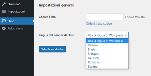 - Selezionando "Usa la lingua di Wordpress" verrà usata la lingua in cui viene mostrato il sito di Wordpress in automatico